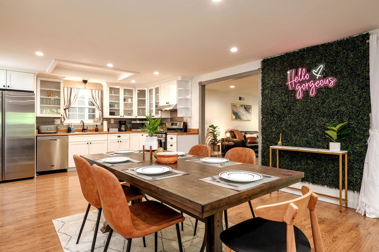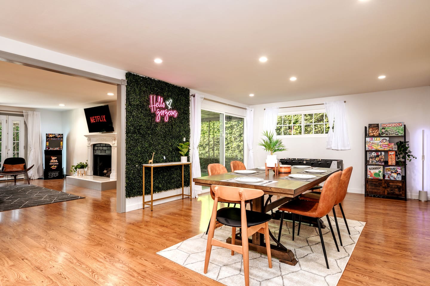 If you’re looking for the perfect base to visit Disney and Knotts Berry Farm then this modern, contemporary home is for you! The home features bright, open plan living with a gourmet kitchen, 4 stylish bedrooms, a chic IG wall, board games, a foosball table and a glamorous outdoor area with a fire pit and an outdoor lounge. Walk to Placentia Town Center with a supermarket, shops and restaurants or drive just 15 minutes to Disney & Knotts Berry Farm that is perfect for Horror night.