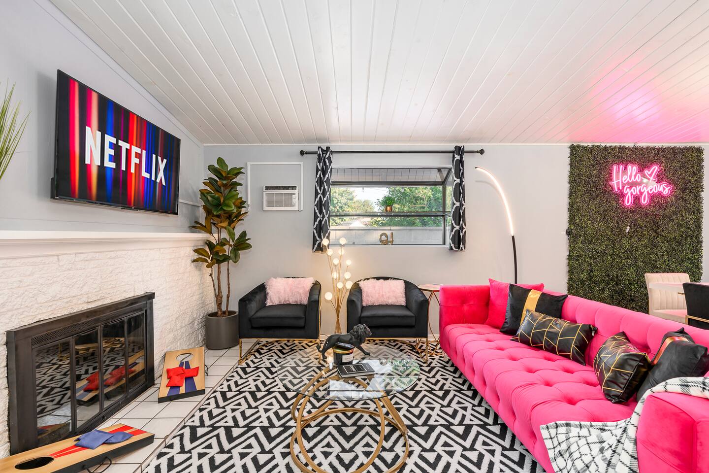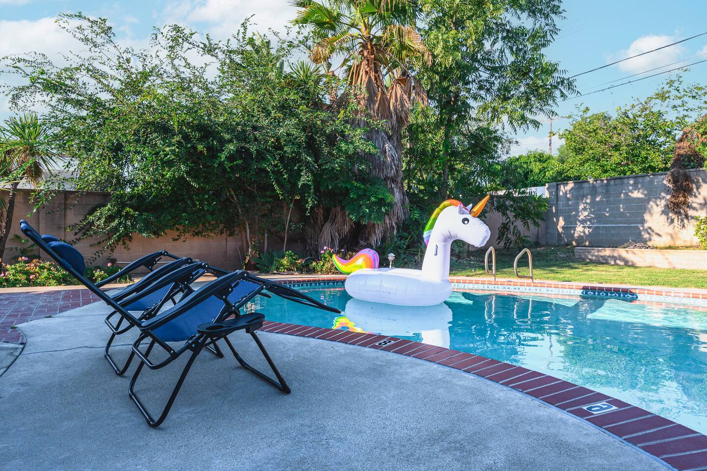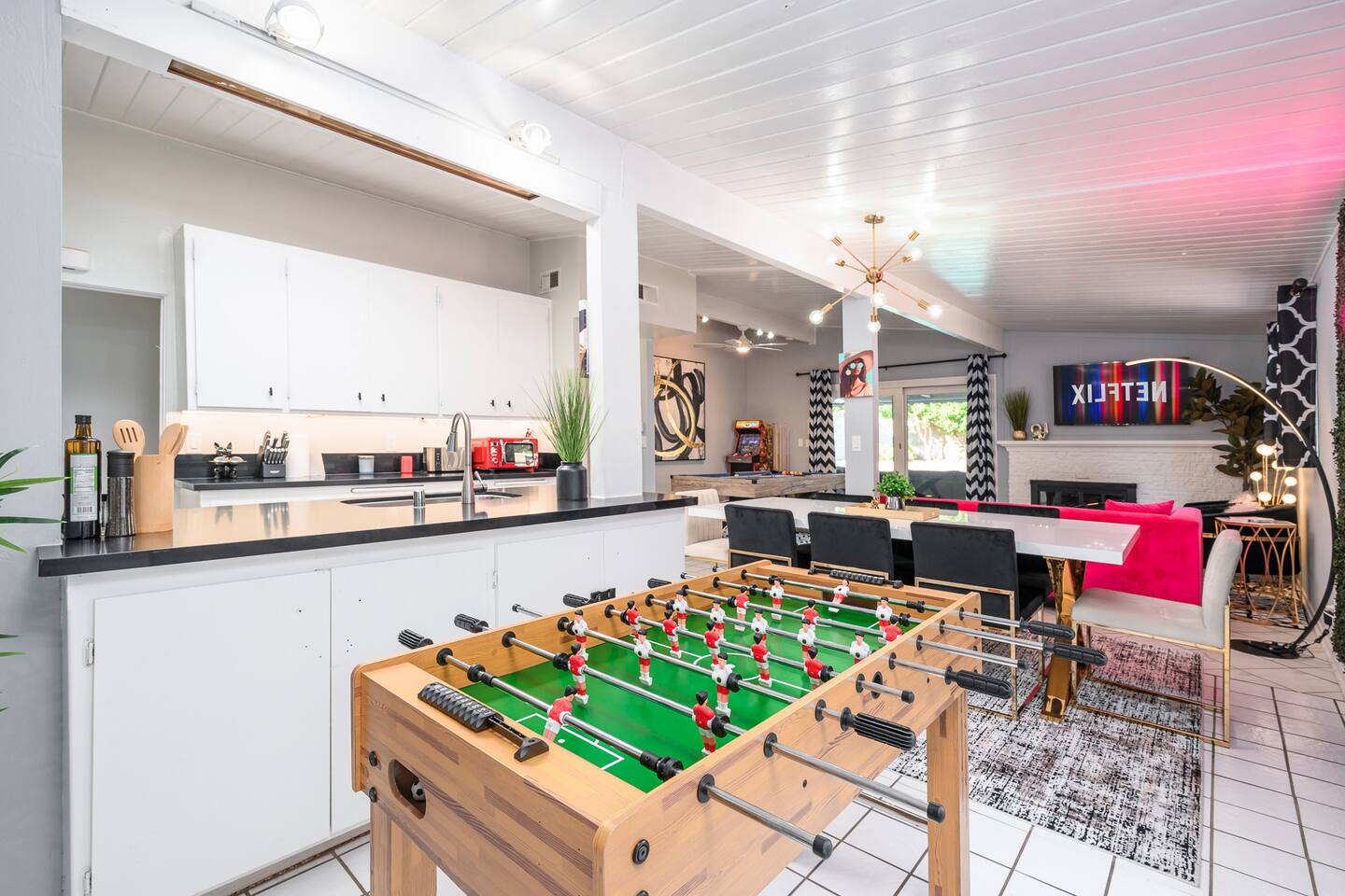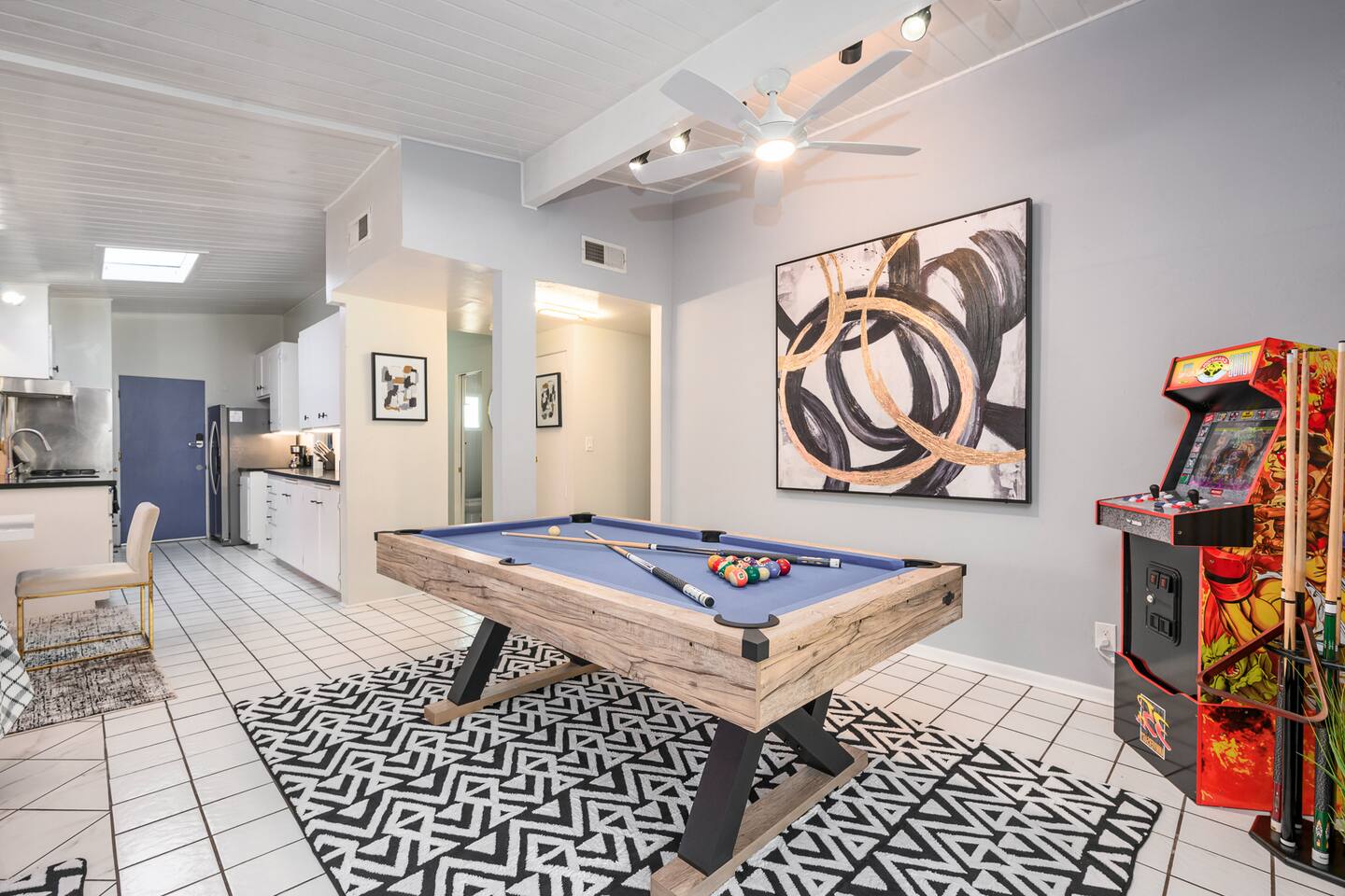 Check yourself in using the easy keyless entry and feel right at home with plenty of space for the whole family to spread out. You’ll have everything you could need for a fun and relaxing stay all just minutes from great shopping, dining, and entertainment giving you the perfect base to experience everything this beautiful part of California has to offer. Pet is allowed. Please check the bottom for more details. ★ LIVING AREA ★ Spend your afternoons gathered together in the spacious, open-concept living area where you can stream a movie on the 60” TV or snap some vacay photos up against the stylish Insta wall and be the envy of friends and family back home. For even more entertainment, you’ll find a selection of board games for fun family game nights as well as a full-size pool table for the adults. ✔ Chic Pink Sofa ✔ 60” TV with streaming apps ✔ Fun Insta Wall ✔ Arcade - 14 Games in 1, Street Fighter II Turbo: Hyper Fighting, Final Fight ✔ Boardgames ✔ Corn Hole ✔ Pool Table ★ KITCHEN & DINING ★ Move through into the modern kitchen that comes fully equipped to cook up stacks of pancakes in the mornings to delicious family dinners at night with quality appliances, sleek stone countertops, and all the cookware, dinnerware, and utensils you could need. Eat together at the stylish table set for eight or on a sunny Californian day, enjoy your meals alfresco style out by the pool under the shady patio. ✔ Stainless Steel Appliances (New fridge with filtered Ice and water) ✔ Toaster ✔ Microwave ✔ Bluetooth Speaker ✔ Rice cooker ✔ Coffee Maker - Coffee provided ✔ Elegant Dining for Eight ✔ Cookware, Dinnerware & Utensils ✔ Alfresco Outdoor Dining ★ BEDROOMS & BATHROOMS ★ After a day of fun and adventure, you’ll find 4 elegant bedrooms within the home giving everyone their own space to unwind. Each bedroom comes fitted out with cloud-like Tempurpedic beds, hotel-quality linen, AC to keep you comfortable, and plenty of room for you to unpack. The master bedroom is ideal for young families with a crib for the little one, a sparkling ensuite bathroom, a lavish king bed, and a smart TV so you can binge the latest series in style while tucked up in bed. Along with the master ensuite, there is a second full bathroom that comes stocked with all the essentials for your stay along with plenty of soft, fluffy towels for each guest. ✔ Master Bedroom – Tempurpedic Queen Bed and Hotel Grade Pillows ✔ Bedroom Two – Tempurpedic Queen Bed and Hotel Grade Pillows ✔ Bedroom Three – Tempurpedic Queen Bed and Hotel Grade Pillows ✔ Bedroom Four – Tempurpedic Queen Bed and Hotel Grade Pillows ✔ Central Family Bathroom ✔ Bath Towels ✔ Soap, Shampoo, Conditioner and Bodywash ★ OUTDOOR LIVING ★ When you need a break from Disney and the sights of the city, slide open the double glass doors, step out into the leafy backyard oasis, and spend lazy days relaxing by the pool or sipping a drink on the lounge. The spacious yard is ideal for entertaining giving you plenty of space for the kids to run around while you relax on the zero gravity loungers as you unwind under the shady patio and take it all in. ✔ Shady Patio Area ✔ Pool ✔ Outdoor Lounge ✔ Zero Gravity Chair ✔ Patio Seating with Umbrella ✔ Alfresco Dining ✔ Life-size Connect 4 game ✔ Solar-powered String Light ★ Pets Fee★ If you have a pet please make sure to add your pet to the guest count. We happily welcome only 1 pet with a one-time pet fee of $300. To ensure the comfort of all our guests, we kindly request that your furry friend is potty trained and does not shed or scratch our furniture. In the unlikely event that any damages occur, we will need to charge a replacement fee for the affected furniture which will be hundreds of dollars. Thank you for your understanding and cooperation in making our accommodations a pleasant experience for all. So if you’re looking for a fun, entertaining, and stylish place to call home for your next Californian adventure, for a group getaway, or for a couples retreat that gives you the perfect location to catch a game, eat out, ride the coasters at Knotts or don your Mickey ears at Disney, look no further than this chic, family-friendly Fullerton home – We can’t wait to host you!
