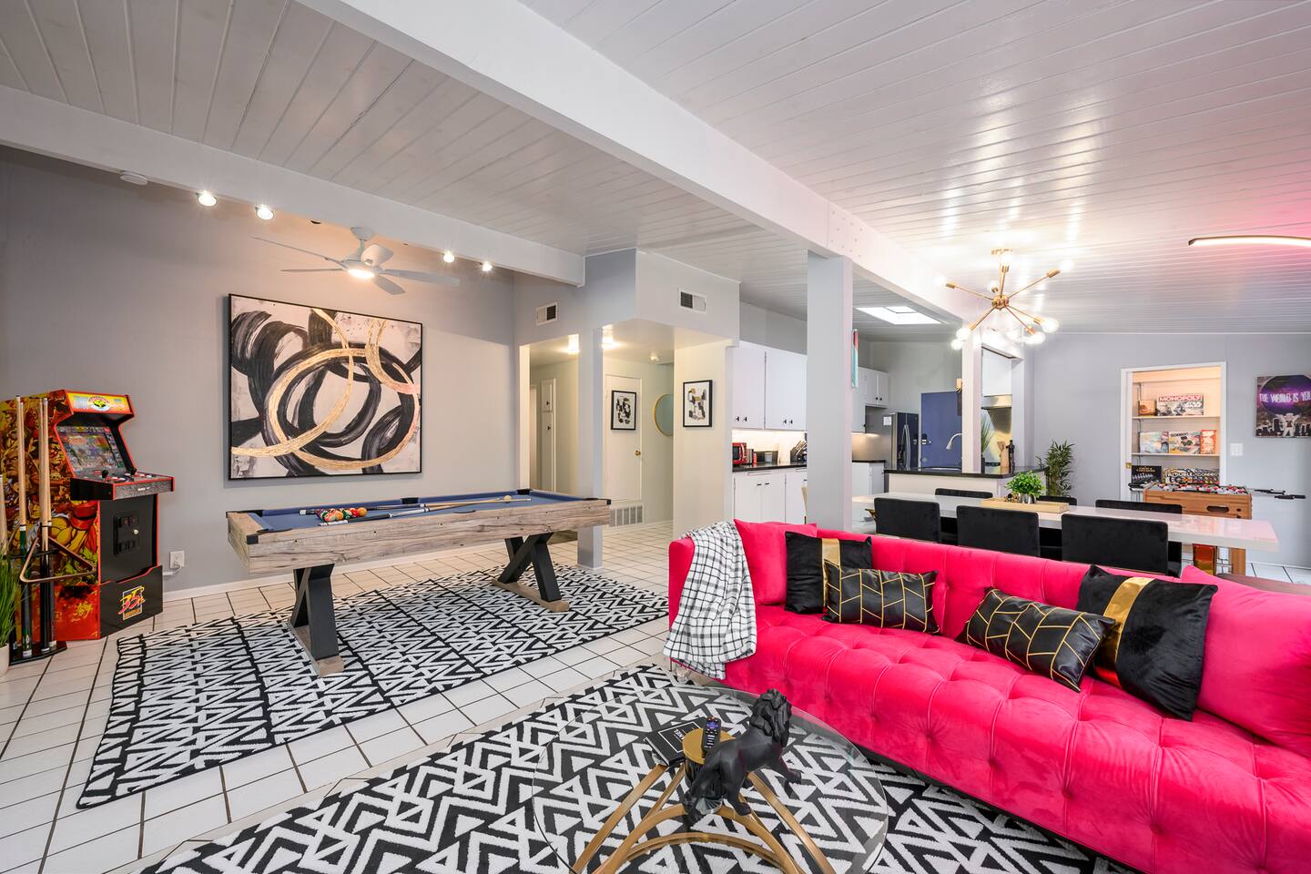 Discover the ultimate family retreat, just a stone's throw from the magic of Disney! This stylish home is made to entertain with board games, a pool table and a fun Insta wall. You will love the vacation vibe and with 4 bedrooms, there's space for everyone. Plus there's an outdoor oasis with a pool to make your stay even more magical. Only 15 minutes to Disney, 20 minutes to the airport, and 15 minutes to Knott's Berry Farm that is perfect for Horror night. Your dream vacation starts here!